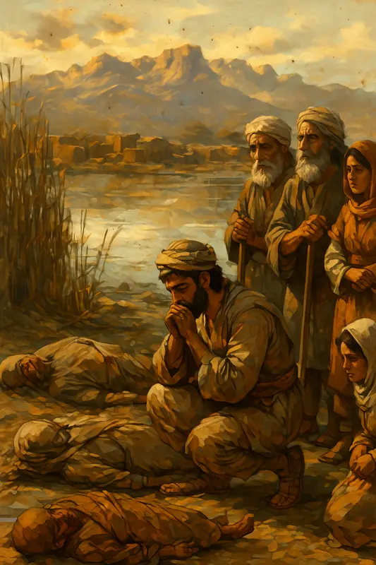 “We asked not once but ten times,” they replied, “yet they uttered sounds we could not understand. It was clear they did not understand us either. When we saw them raging like lions and elephants, killing our people, we fought back. The bodies of our slain lay on the ground; we gathered them and carried them to the mound of Gom.”